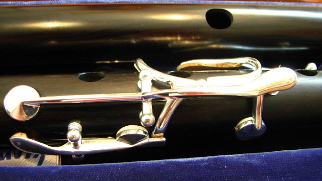 Close up of the right hand area of the flute in it's case with the head in the back